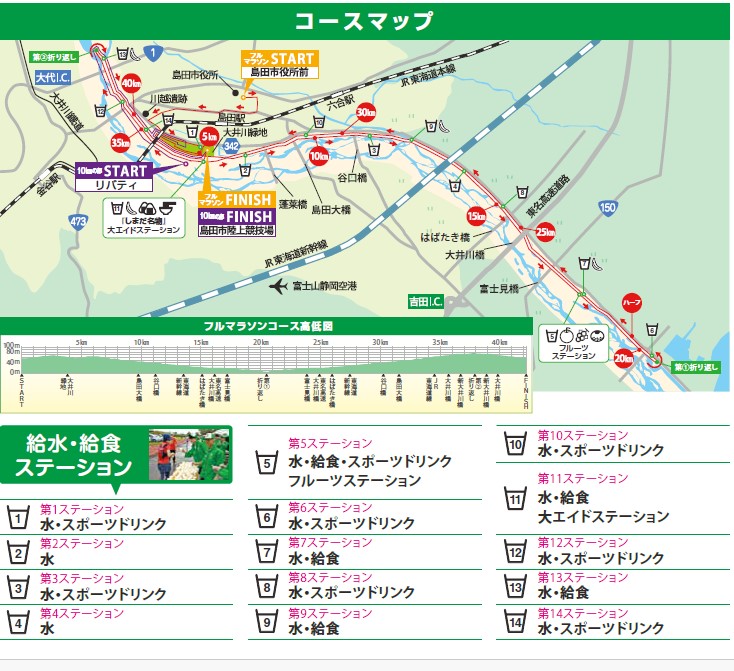 スタート:〈フル〉島田市役所前 〈10K〉島田市陸上競技場